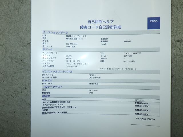 Аукционный лист Suzuki GSR750A 2013